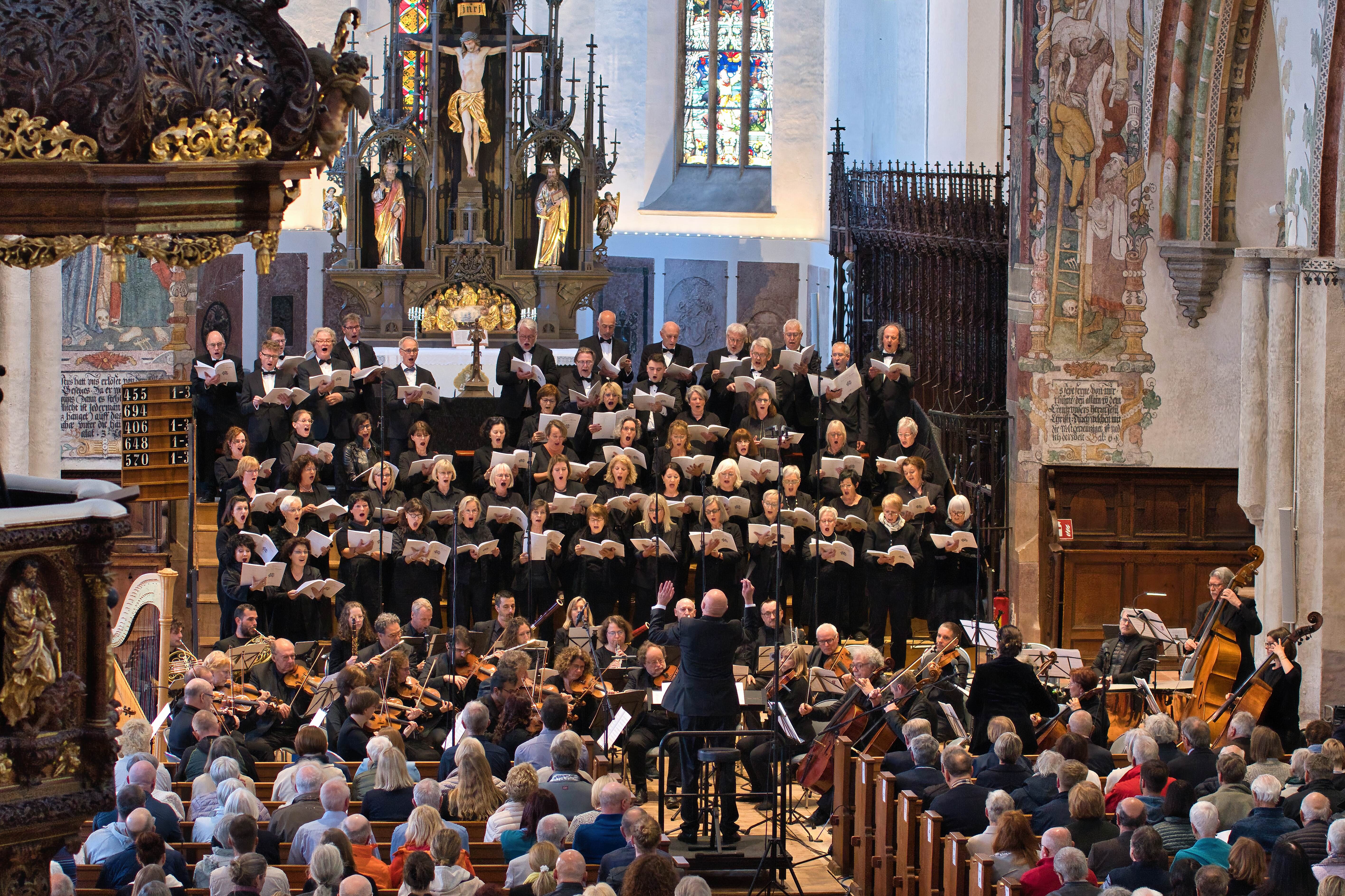 Die Zuhörer in der voll besetzten St. Martin Kirche waren begeistert und spendeten dem großen Aufgebot an Sängern, Instrumentalisten und Solisten starken Applaus.