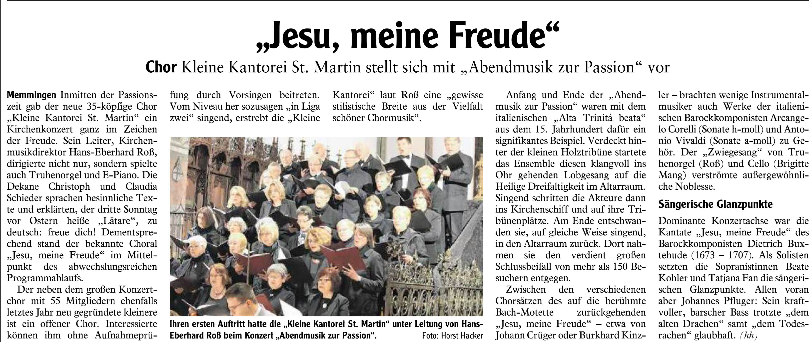 Samstag, 30.03.2019, 19:00 Uhr Rezension Kirchenkonzert der Kleinen Kantorei St.